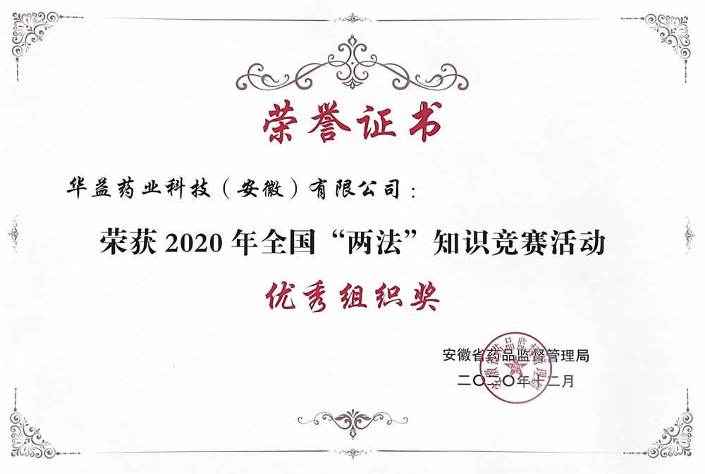 2020年全國“兩法”知識競賽活動優(yōu)秀組織獎