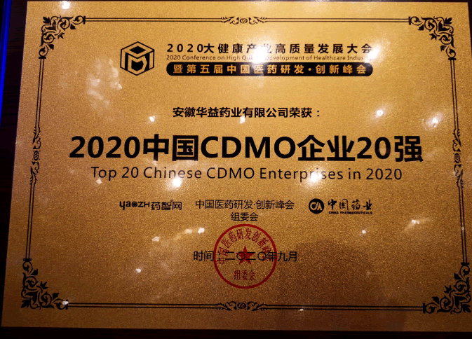 大會第一天隆重發(fā)布了《2020中國藥品研發(fā)實(shí)力排行榜》,評選組委綜合考量企業(yè)管理能力、臨床研究實(shí)力、品牌影響力、營業(yè)額、行業(yè)口碑等多項標(biāo)準(zhǔn),評選出藥品研發(fā)實(shí)力、CRO企業(yè)、CDMO企業(yè)等六大行業(yè)榜單,華益藥業(yè)榮獲“2020中國CDMO企業(yè)20強(qiáng)”榮譽(yù)稱號!